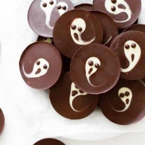 Easy 2-ingredient Ghost Chocolate Cups are the perfect, fun Halloween treat that is done in less than 15 minutes. Your kids can even help you to make them!