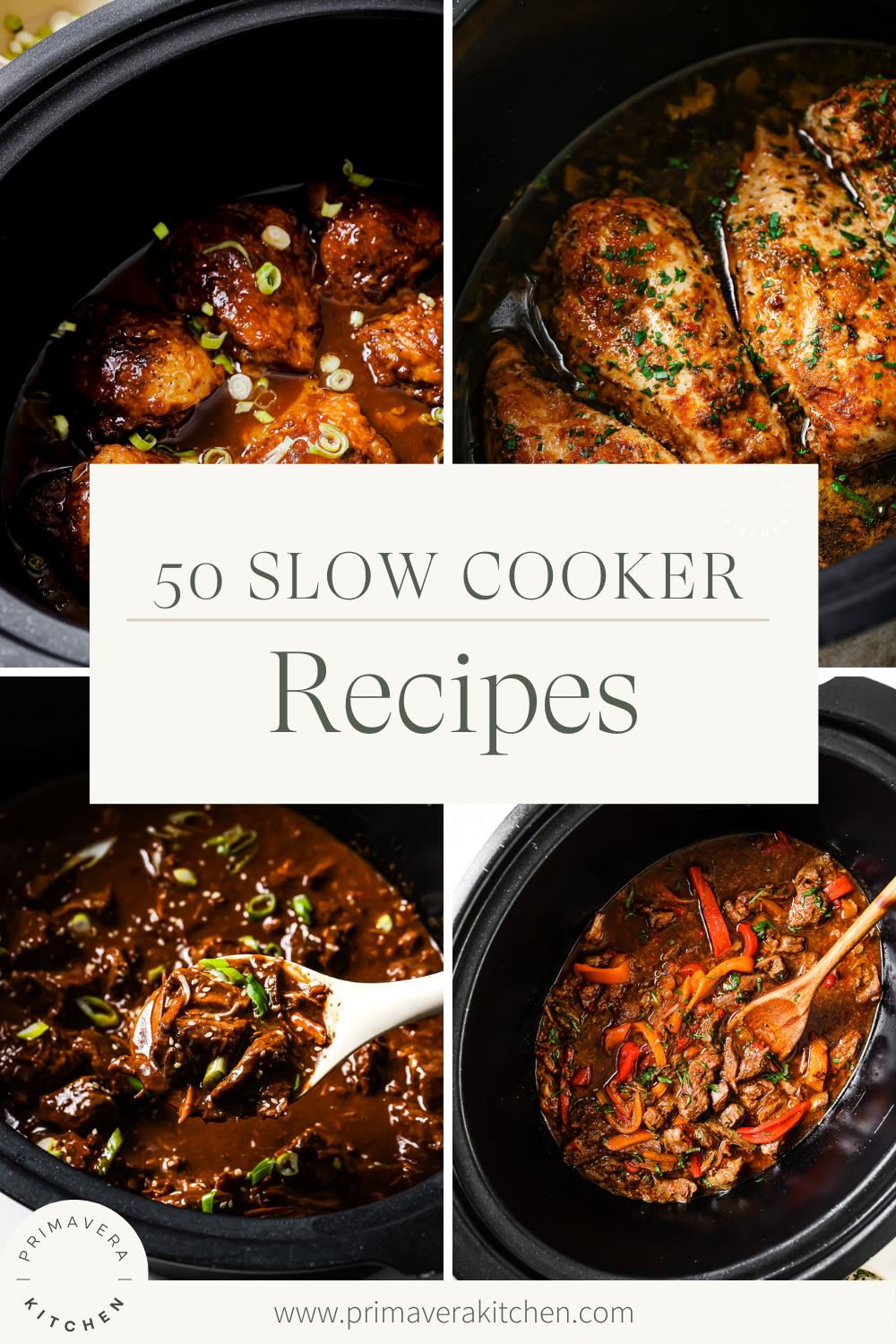 This roundup of 50 slow cooker recipes from around the web is perfect for your weeknights. These recipes are warm, filling, and of course, very satisfying!! I hope you enjoy these wholesome and tasty recipes!