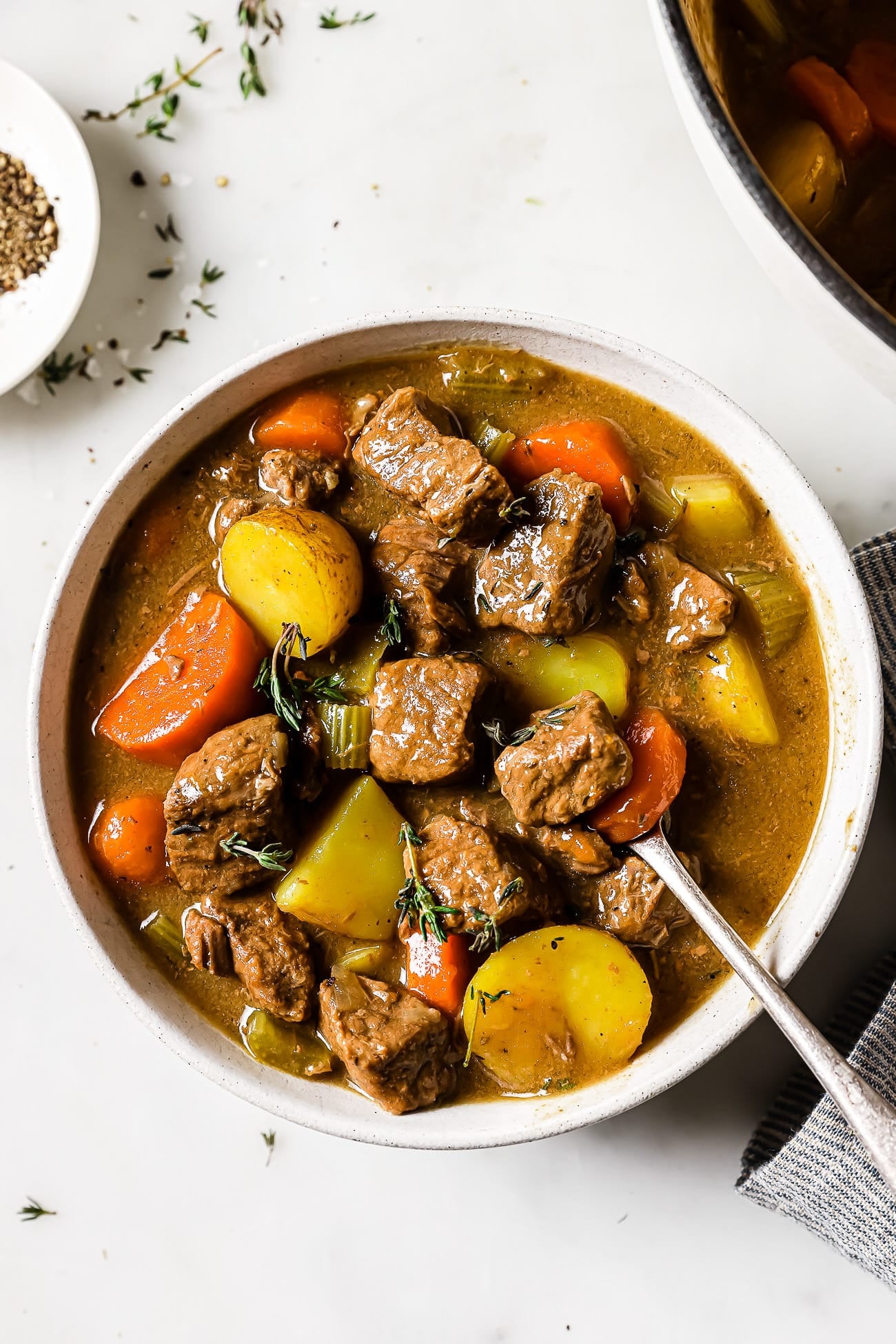 Cooking the stew low and slow is the key to tender chunks of beef. If they’re not fall-apart tender, you can let it simmer a little longer.