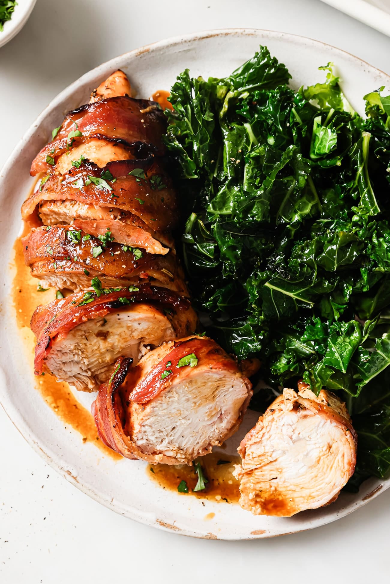 It’s optional, but I like to place the chicken on a wire rack set over the baking sheet. This helps the bacon crisp up while allowing the excess grease to drip down. I’ve tested this recipe both with and without the rack, and I definitely prefer using it.