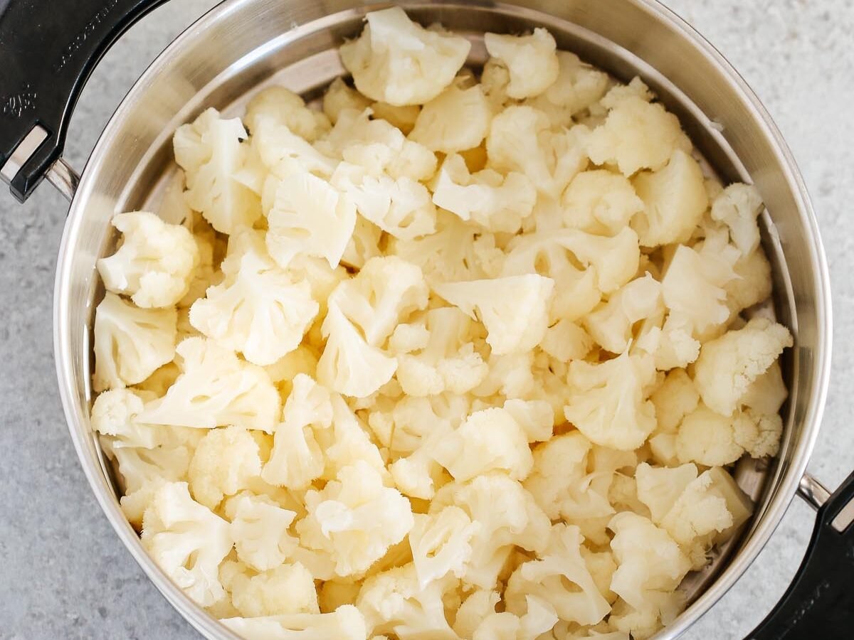 1: Steam the cauliflower florets until they’re fork tender (5 minutes).