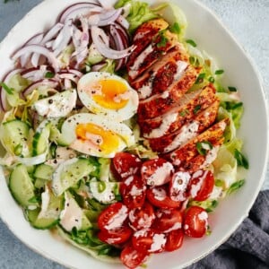 I’m such a big fan of adding chicken to my salads. You probably already know that if you’ve tried my Chopped Chicken Salad, Greek Chicken Salad, or Chimichurri Chicken Chopped Salad. I just love how filling and flavorful they are!