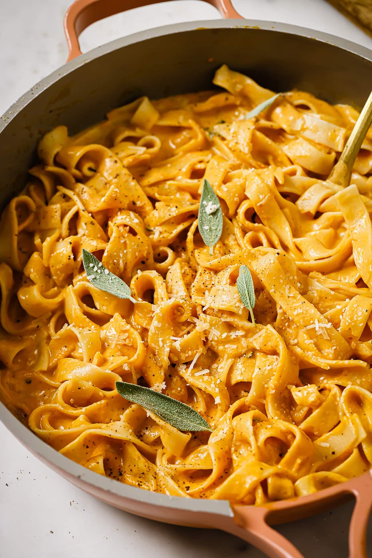 - Parmesan cheese — The fresh grated cheese melts right into the sauce and creates a savory, salty balance to the pumpkin. Save some extra cheese to sprinkle on top, too!